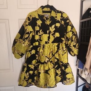 Anthropologie The Bettina Tiered Shirt Dress Minu Jacquard Edition Small