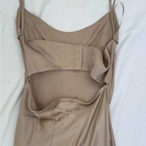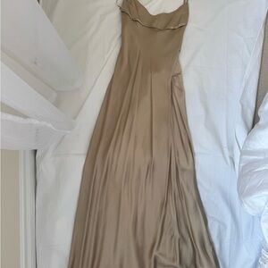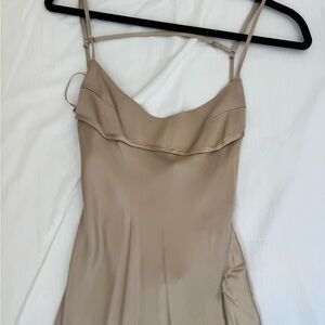Zara Satin Slip Maxi Dress in Taupe Brown