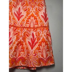Keywords: LOFT, mini skirt, smocked waist, orange, paisley print, bandana print, lined skirt, cotton blend, NWT, new with tags, boho, bohemian, tomatogirl, summer skirt, vacation, resort wear, beach, Mediterranean, tropical, floral print, tiered, ruffle hem, cottagecore, coastal grandmother, colorful, vibrant, maximalist, dopamine dressing, sundress alternative, pull-on skirt, elastic waist