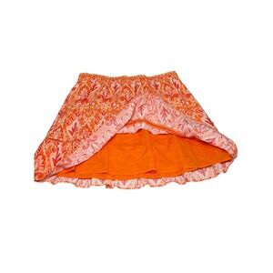 LOFT mini skirt in a bold orange paisley/bandana print, NWT. Fully lined with a comfortable smocked elastic waist and flirty ruffle hem. Cotton blend fabric is perfect for warm weather.