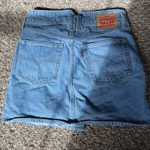 Chic Levi's mini skirt in light blue denim. Perfect for casual wear. Features classic pocket design.