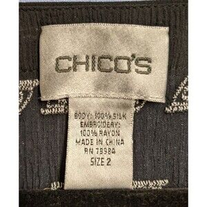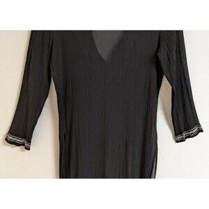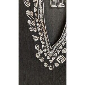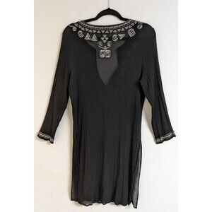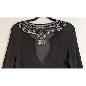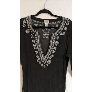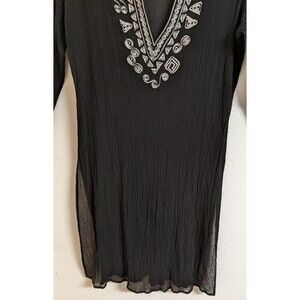 CHICO'S Women's Black Silk Embroidered Deep-V Cover-Up Beach Cruise 10/12