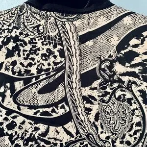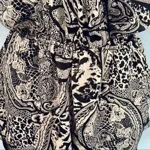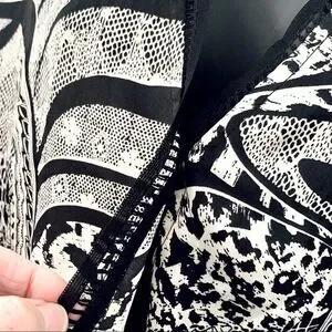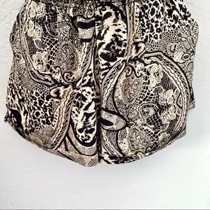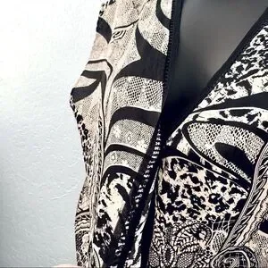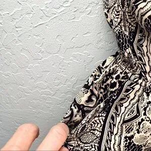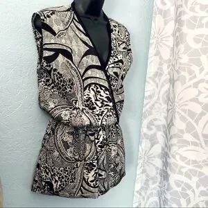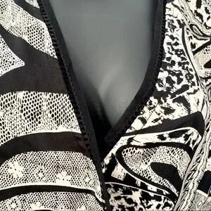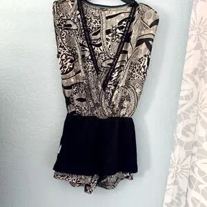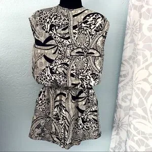 ANGL Black & Cream Abstract Pribt Surplice Short Romper Size Small