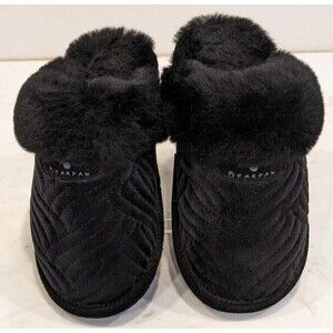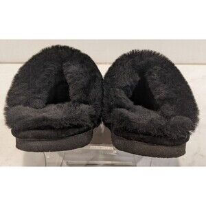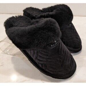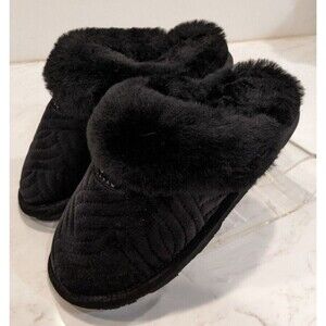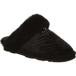 Women's Bearpaw Loki II Scuff Slipper Black Quilted Velvet Real Shearling Size 6