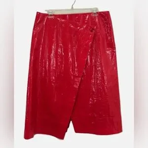 J.CREW Collection Red Laminated Linen Wrap Midi Skirt Size 16 Glossy High Rise