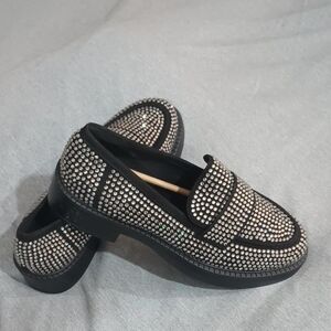 Elegant black loafers with silver stud embellishments. Perfect for a chic look.