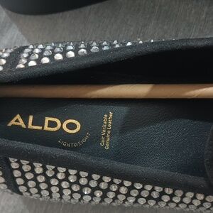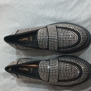 Aldo Black and Silver Studded Loafers