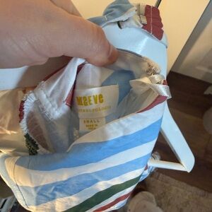 Maeve Halter Midi Dress in Light Blue, Olive & Rust Stripe