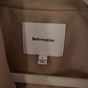 Ref trench with pointed collar, button closure, and buckle waist belt. Fit is slightly oversized.