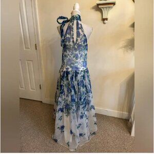 Anthropologie BHLDN Kendall High-Neck Scarf Floral Organza Maxi Dress size S