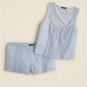 We collaborated with designer (and J.Crew alum) Araks Yeramyan on an exclusive collection of pajamas and lingerie that celebrates our shared love of unexpected color combinations and thoughtful details. This sweet tank and short set comes with lace panels, polished pintucks and ruffle details on top, plus silk trim at the waistband and a subtly sheer finish. The silk in this style is bluesign®-approved and crafted at a LEED®-certified facility whose manufacturing process uses less water and energy—and it's dyed without hazardous chemicals.