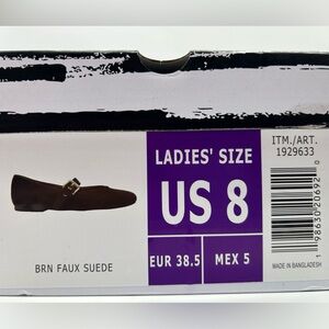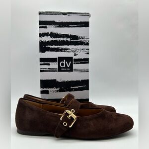 Brand new DV by Dolce Vita Mauryce Mary Jane flats in a rich brown faux suede finish with elegant gold buckle hardware.