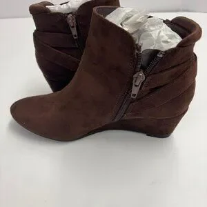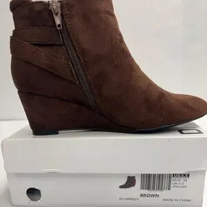 Brown Suede‑Style Wedge Ankle Boots – NEW