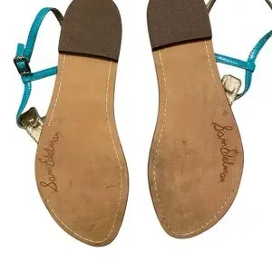 Sam Edelman Turquoise and Gold Thong Sandals