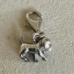 This charming dog charm captures playful puppy energy in a petite, finely crafted design. With its secure lobster clasp, it easily attaches to bracelets, chains, or zipper pulls. A lovely addition to any charm collection or a thoughtful gift for dog lovers.