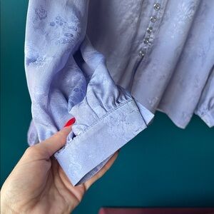 Vintage Lavender Satin Jacquard Peter Pan Collar Blouse Button Front Top