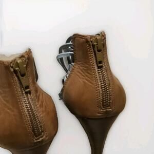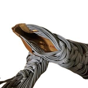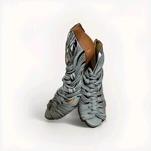 Gianni Bini Rigby Woven Leather Peep-Toe Heels Woman Shoes Light Blue Brown 7m