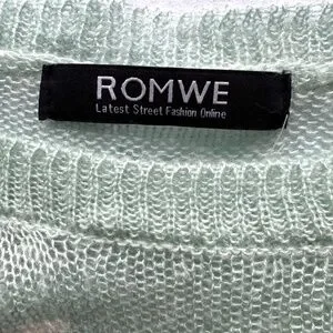 ROMWE mint distressed deer sweater sheer knit long sleeve