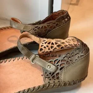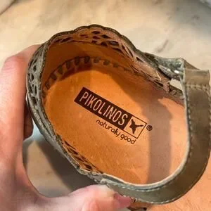 Pikolinos Mary Jane Flats Womens 38 Olive Green Leather Laser Cut Boho *Read