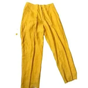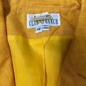 Club France Womens Yellow 100% Linen 2 Piece Pant Suit Short Sleeve Blazer 12