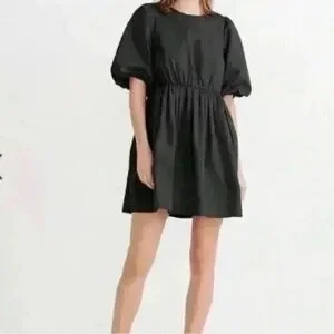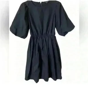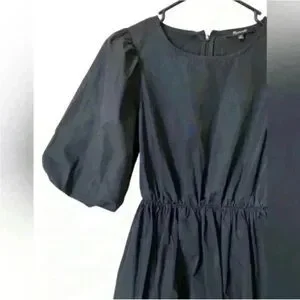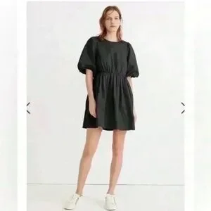 Madewell Poplin Crewneck Bubble-Sleeve Mini Dress Black