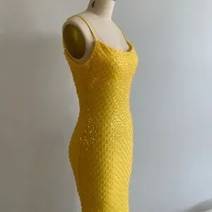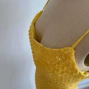 Windsor Yellow Sequin Backless Prom Dress