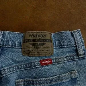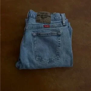 Denim wrangler jeans tailored prior to fit at the waist but still achieve the baggy 90s mom fit