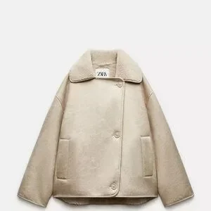 ZARA Cream Teddy-Lined Short Coat