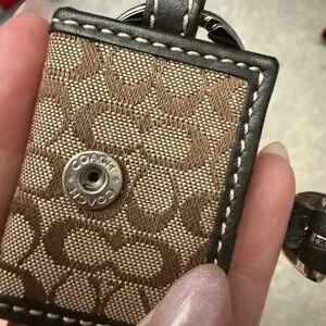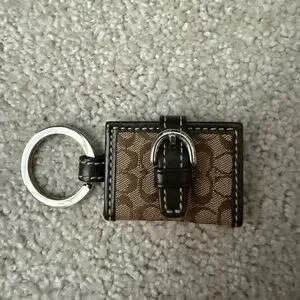 Vintage Y2K Coach Brown Leather Photo Frame Keychain Holder circa 2005-2006. Compact brown patterned keychain wallet with silver ring. Stylish and functional. In excellent used condition. Comes from pet and smoke free home.