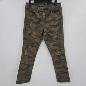 Keywords: GAP Jeans, Women's Jeans, Camo Jeans, Distressed Jeans, Ripped Jeans, Cargo Pants, Military Style, Army Print, Fashion Jeans, Casual Pants, Denim, Best Girlfriend Fit, Size 28, Green Camouflage, Brown Camouflage