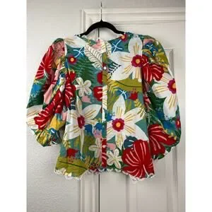 SUGARLIPS Tropical Puff Sleeve Blouse Floral Resort Statement Top M