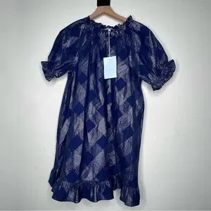 NEW Hill House The Katherine Glitter Check Navy Nap Dress, size M