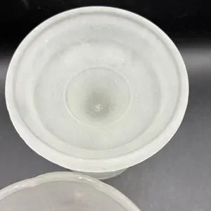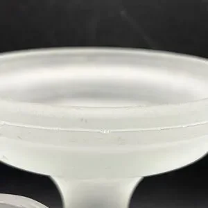 Glass seam present. Raised imperfection near glass seam. Some bubbles to the glass. Some surface wear and chipping present. See photos and video.