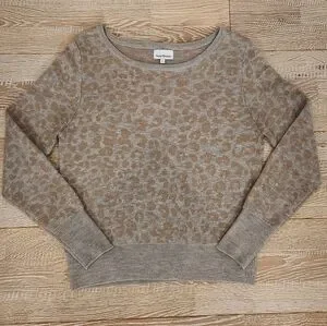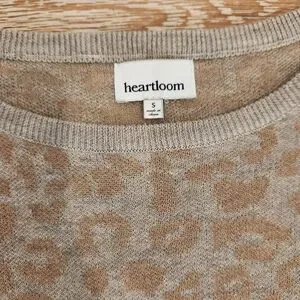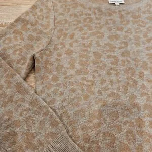 Elegant leopard print sweater by Heartloom. Features a classic crew neck. Soft and comfortable for everyday wear.