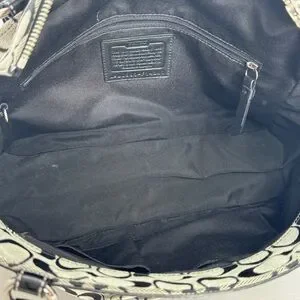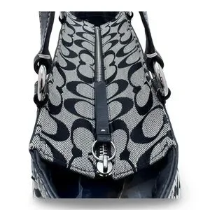 Coach Signature Turnlock Black Gray Jacquard Canvas Leather Trim F14281