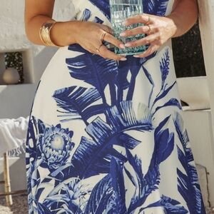 Dance from the sun-drenched pier to the moonlit shore in a dress that mirrors the water's glow. The Lagoon Luster Abstract Halter Maxi Dress is pure destination dressing. Made from a luxe crepe fabric, it features a vibrant tropical floral print that pops against any backdrop. The empire A-line silhouette is incredibly flattering, fitted at the bust before flowing gracefully to the floor. A beautifully braided halter neck tie closure adds an artisanal touch to this showstopping piece.