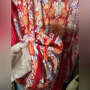 Gorgeous tie-front top featured in a lightweight floral fabrication with exaggerated long sleeves in a longline silhouette.