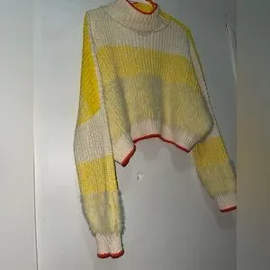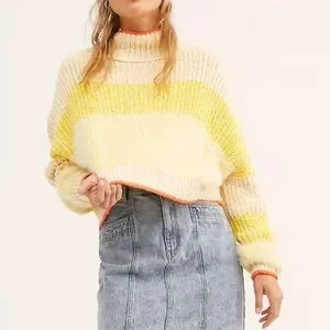 NWOT Free People Yellow Sunbright Slouchy Knit Fuzzy Sweater