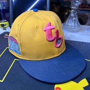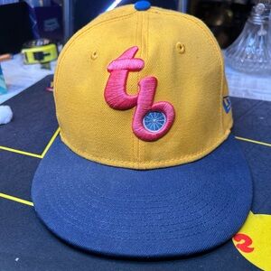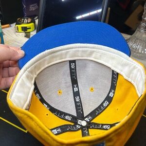 Hat is in great shape. Super clean. Color is a little off in the photo, it’s a vibrant gold and navy color