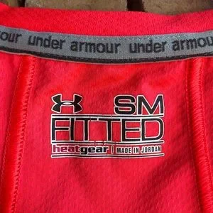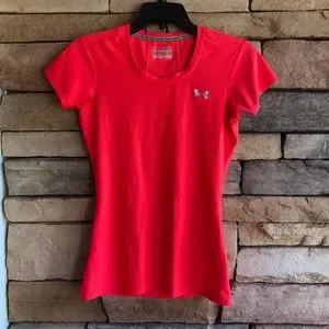 Under Armour bright pink orange fitted active workout short sleeve shirt. In great condition. Barely used. Stretch material. Women’s size Small.