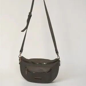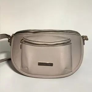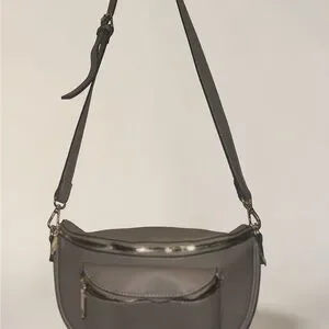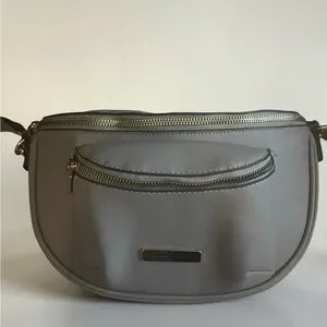 Adrienne Vittadini Grey Crossbody Belt Bag with Gold Hardware
