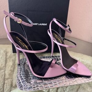 Got off Neiman marcus. Elevate your style with these elegant pink strappy heels from Saint Laurent. Perfect for any occasion, these shoes offer both sophistication and comfort.Comes with original box and dust bag.