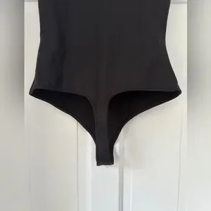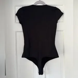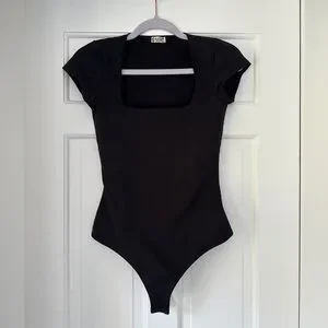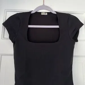 Free People Intimately Black Square Neck Short Sleeve Bodysuit in Size Small