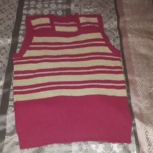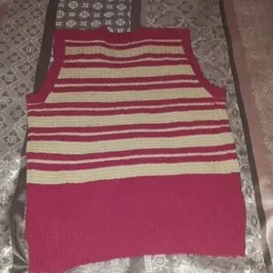 This is part of a 3x$20 sale. Hot pink and cream color pattern pull over sweater vest top. It's chunky crochet vest. Very cute! Would look awsome with some jeans.