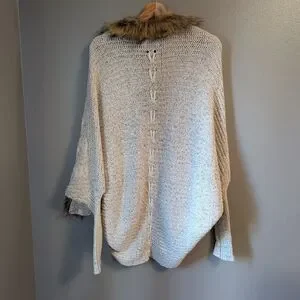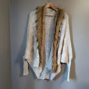 Military Hippie Boho Faux Fur Trim Cardigan Cable Knit One Size Fits Most