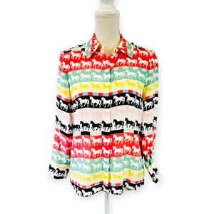 Alice + Olivia Willa Placket Horse Stallion Silk Blouse Size Small