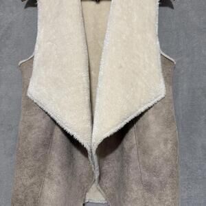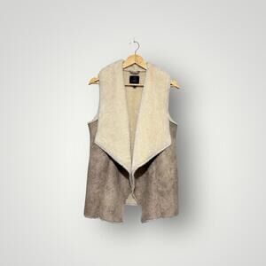 Dynamite Faux Suede Sherpa Vest Beige Waterfall Open Front XS-S Womens