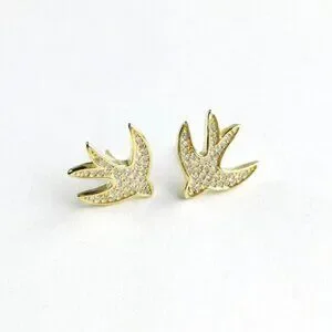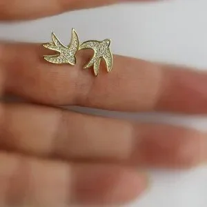 Swallow bird Stud earrings In 14k Gold over Sterling Silver 🆕