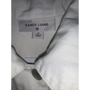 The Sandy Liang Target Cream Coveralls Jumpsuit in Women's Size 12 is a stylish and cozy one-piece outfit perfect for a casual occasion. Made from cotton denim fabric in a solid ivory color, this jumpsuit features a collared neckline, long sleeves, and a button closure. With a relaxed fit and tapered leg style, it is both comfortable and flattering. Additionally, the coveralls have pockets for added convenience. Ideal for the winter, fall, and spring seasons, this jumpsuit is a versatile and trendy addition to any woman's wardrobe.