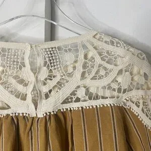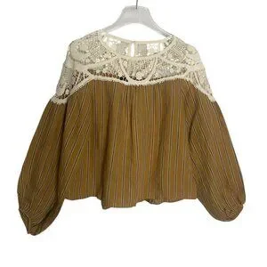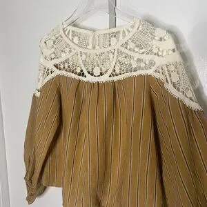 Zara Woman Crochet Striped Cotton Long Sleeve Blouse Size S